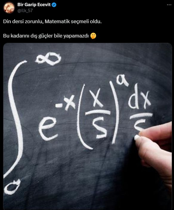 'Bir Garip Ecevit' kullanıcı adlı kişinin X'ye yaptığı "Din dersi zorunlu, Matematik seçmeli oldu." paylaşımı Dezenformasyonla Mücadele Merkezi tarafından yalanlandı.