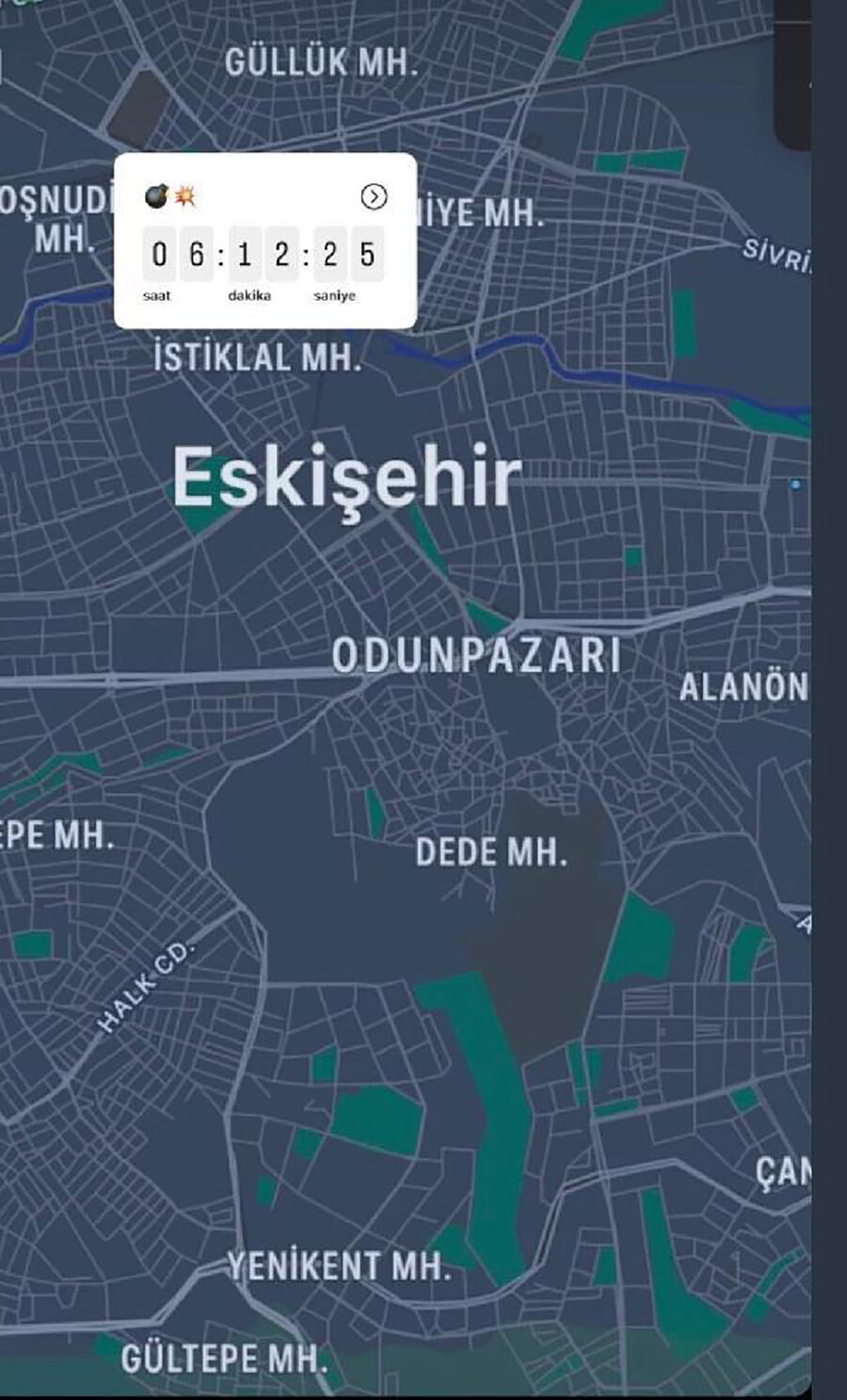 Sosyal medyada bir kişi, İstiklal Caddesi'ndeki terör saldırısının ardından Eskişehir'de de patlama olacağını iddia etti. Şahıs, şehrin haritasını paylaşıp "Geri sayım başladı" yazdı.