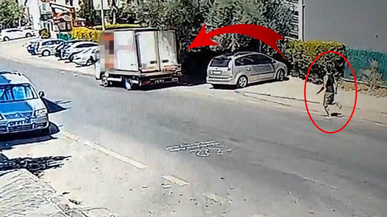 Bu sırada iddiaya göre freni boşalan kamyonet, kontrolden çıkıp, yokuş aşağıya hareket ederken sürücü İsa Akgöl de peşinden koşmaya başladı. O anlar ise yakındaki bir iş yerinin güvenlik kamerasına yansıdı.