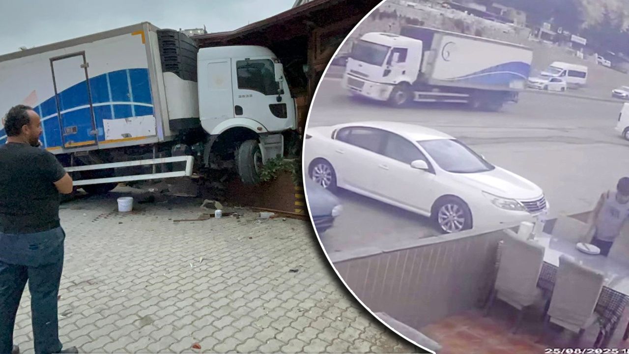 Hatay'da korku dolu anlar! Kontrolden çıkan tır restorana girdi, işletmeci isyan etti