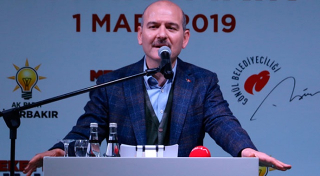 Yapılan havalimanlarının kullanılmaması yönünde açıklama ve broşür dağıtıldığını hatırlatan Bakan Soylu, "Bu havalimanını kullanmayın dediler, broşür dağıttılar, şimdi Pervin Buldan kendisi VIP’den giderek havalimanını kullanıyor. Yakın tarihe dönüp utanmıyor mu acaba? Madem kullanacaktınız neden buna karşı çıktınız? HDP bize hesap soracağız diyor, neyin hesabını soracaklar, yapılan hizmetlerin mi hesabını soracaklar? Terör örgütlerinin fitnesi ile susamış olan insanlar birbirleriyle o kadar güzel kucaklaşıyorlar ki. 13-14 yaşındaki çocuklar eğer dağa götürülüyor, o adamlar tarafından tecavüze, tacize uğruyorlarsa bundan biz de sorumluyuz. Eğer o adamlar bunları ikna edip götürebiliyorlarsa demek ki biz onları yeterince eğitemiyoruz, bu açık ve nettir. Cumali Atilla terör örgütünün ve onun siyasi uzantısının foyasını ortaya çıkardı. Onların nasıl bu memleketi dolandırdığını, dolandırıcıdırlar onlar, PKK sadece bir terör örgütü değil, dolandırıcı bir örgüttür. Cumali Atilla, borçlanmadan, onların da borcunu kapatarak bunu göstermiştir. Dağa para göndermediği için, heba etmediği için, belediye başkanı seçilip kumar masalarında paralarını kaybetmediği için Allah korkusu olduğu için millet sevgisi olduğu için büyük bir mücadele örneği ortaya koymuştur. Önemli bir sınava doğru gidiyoruz, terörün efendiliği mi, hizmetkarlığın efendiliği mi? Diyarbakır halkı ne ortaya koyar başımızın üstüne, ama biz bu mücadeleyi hep beraber ortaya koymak zorundayız. Önümüzdeki beş yılda destansı hizmetlere imza atar ve Avrupa’dan herkesin gelip görmek istediği, dünyadan herkesin gelip görmek istediği herkesin yüzünü buraya döndürdüğü bir yer haline gelir Diyarbakır. Dünyanın en korkak örgütü PKK’dır, hafif bir gözaltına alındıkları zaman herkesi satabilmekte kabiliyetine sahipler. Bu eli kanlı örgüte oy pusulası ile cevap verelim ve tarihi değiştirelim. 15 bin adam vardı dağlarda değil mi, şimdi 700 tane kaldı, biz onun hakkından da geliriz, o iş bizim işimiz.”