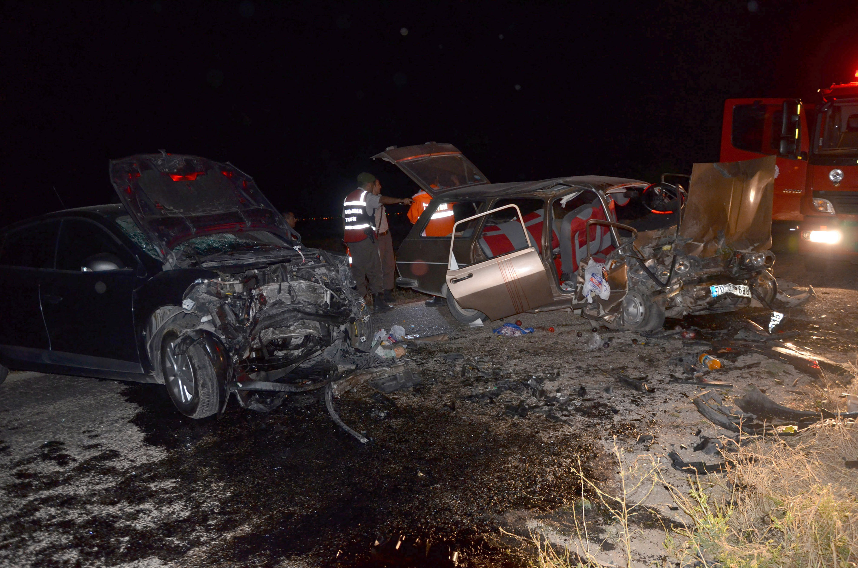 Karaman'da iki otomobilin kafa kafaya çarpışması sonucu 2 çocuk hayatını kaybetti, 4 kişi yaralandı.Kaza, merkeze bağlı Yuvatepe köyü yakınlarında meydana geldi. Edinilen bilgiye göre, İbrahim Çevik (39) yönetimindeki 70 DU 628 plakalı otomobil ile Sefa Avcı (22) idaresindeki 70 AU 015 plakalı otomobil kafa kafaya çarpıştı. Kazada 70 DU 628 plakalı otomobilde bulunan henüz 6 aylık olan Elif ile 10 yaşındaki Melike Çelik, olay yerinde hayatını kaybetti, her iki aracın sürücüsü ile Ayşe Çelik (37) ve Gizem Çelik (4) yaralandı. Yaralılar ambulansla Karaman Devlet Hastanesi'ne kaldırılarak tedavi altına alındı.