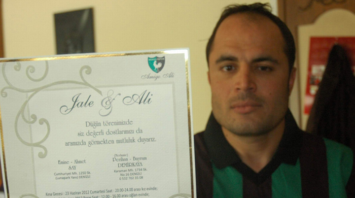 Denizlispor amigosu olan ve 24 Haziran'da nişanlısı Jale Say ile dünyaevine girecek Ali Demirkaya (35), Fenerbahçe Galatasaray maçını protokol tribününde izledikten sonra, maçın bitiminde çıkan olaylar sebebiyle gözaltına alınmış ve mahkemeye sevkedilmişti. Mahkemede "Düğün davetiyesi dağıtıyordum" diyen Ali Demirkaya, tutuksuz yargılanmak üzere serbest bırakılırken, geldiği memleketi Denizli'de arkadaşları tarafından geçmiş olsun dilekleriyle karşılandı.Düğün davetiyesi dağıtmaya kaldığı yerden devam eden Ali Demirkaya, olay gününü de anlattı. İstanbul'a düğün davetiyesi dağıtmaya gittiğini söyleyen Ali Demirkaya, "Dünyanın da gözü maç dolayısıyla İstanbul'da olduğu için, Fenerbahçe Galatasaray maçı her zaman denk gelmiyor. Ben de maça gireyim dedim" dedi.