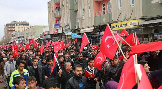 Adıyaman'ın Kahta ilçesinde binlerce kişi, ellerinde Türk bayraklarıyla terör örgütü PKK'nın saldırılarını protesto etti.
