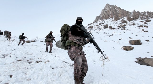 Türkiye terörle mücadelede engel tanımıyor. Hakkari’nin dağları Özel Harekâtçılarımıza emanet. Karla kaplı zirvelerde nöbet tutan polisler, hain eylemler için yurda sızmaya çalışan PKK’lıları önlüyor. Kahramanlar “Önce vatan” diyor. Bu arada ocak ayında yurt içi ve yurt dışındaki operasyonlarda 90 terörist etkisiz hâle getirildi, 746 şüpheli de gözaltına alındı. Özel Harekât polisleri, kış mevsiminin çetin geçtiği Hakkari’de, soğuk hava ve yoğun kar yağışına rağmen terörle mücadelesini başarıyla sürdürüyor. Hâkim tepelere ve yüksek dağlara kurulan güvenlik noktalarında nöbet tutan “özel” kahramanlar, teröristlerin yurda sızmasını engelliyor. Karla kaplı dağlarda tam teçhizatla operasyon yürüten özel harekâtçılar bölgenin huzur ve güveni için mücadele veriyor. Şehir merkezindeki Bayraktepe ile çevrede bulunan diğer üç tepeye konuşlandırılan “Kale-1”, “Kale-2” ve “Kale-3” ile Hakkari-Yüksekova-Çukurca yolundaki “Kale-4” güvenlik noktalarındaki özel harekat polisleri, bölgeyi kontrol altında tutuyor. Ailelerini geri planda tutarak “önce vatan” diyen özel harekât polisleri, terörle mücadelede görevini fedakârca yerine getiriyor.