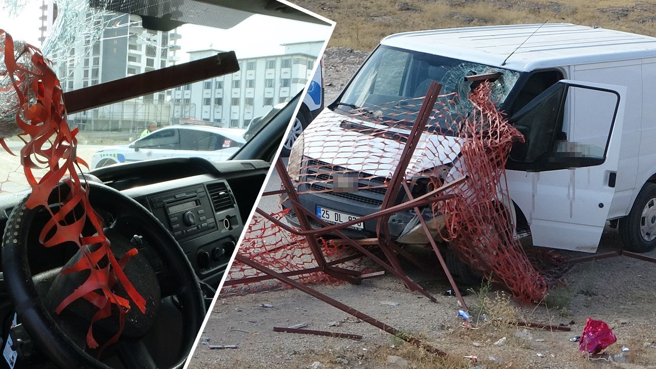Çarpmanın etkisiyle demir parçası, minibüsün camını delerek sürücü N.Ö.'nün kafasına saplandı. Feci kaza anı çevredeki güvenlik kameralarına da saniye saniye yansırken, ağır yaralanan sürücü hastaneye kaldırıldı.