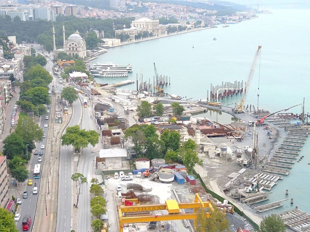Önümüzdeki günlerde beton kazıklar üzerine iskelelerin yapımına başlanacak. Bugünlerde İstanbul Boğazında hakim olan turkuaz rengi ise, bu bölgede yürütülen çalışmalar nedeniyle yer yer çamurlu suyla karışmış durumda gözüküyor.