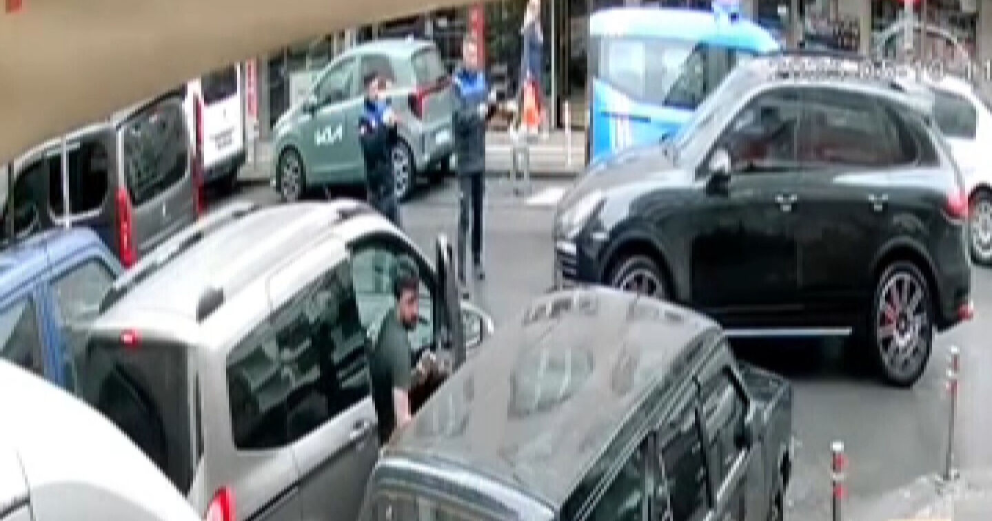 Yoldan geçemeyince sinirlenerek aracına binen sürücü, zabıta ekiplerinin üzerine lüks otomobilini sürdü. Sürücü olay yerinden kaçarken, yaşananlar güvenlik kamerasına yansıdı.