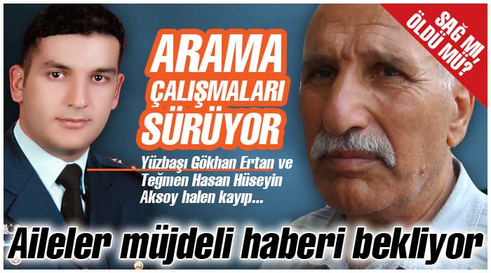Suriye'nin düşürdüğü savaş uçağındaki pilotlar Yüzbaşı Gökhan Ertan ve Teğmen Hasan Hüseyin Aksoy'u arama çalışmaları sürerken, ailelerin bekleyişi de sürüyor.