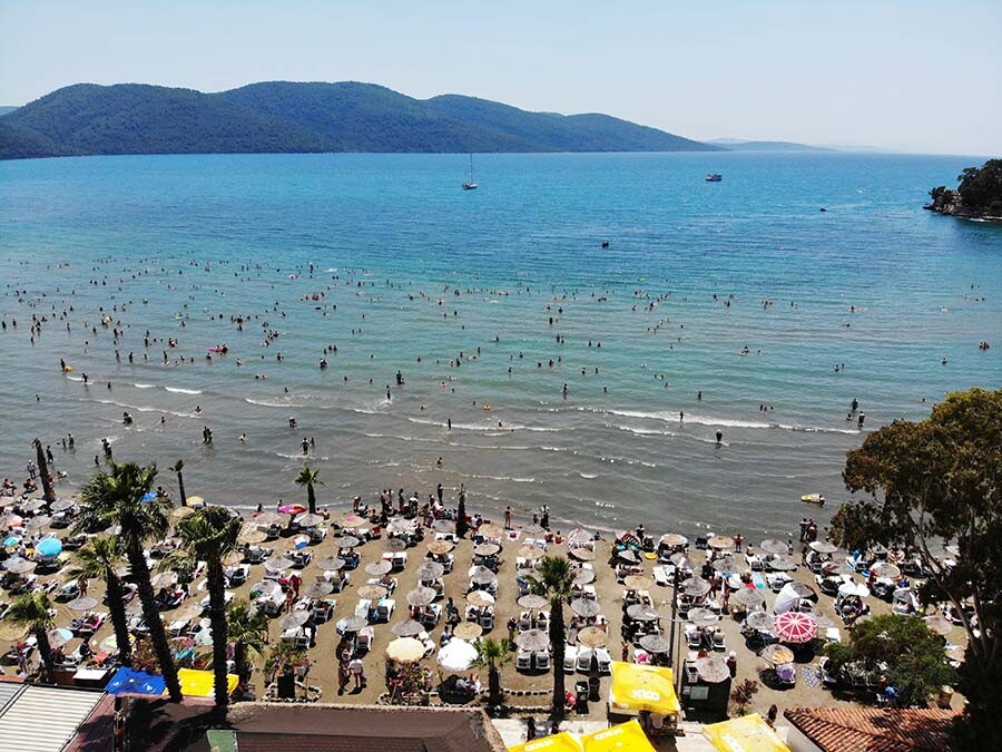 Kış aylarında nüfusu üç bin olan Muğla Akyaka'da bayram tatiliyle birlikte adeta insan seli yaşanıyor. Tatil beldesine girişte kilometrelerce araç kuyruğu oluşurken plajda da adım atacak yer kalmadı. Bu durum sonrası yerli turistler "Nereden geldik" diye dert yandı.