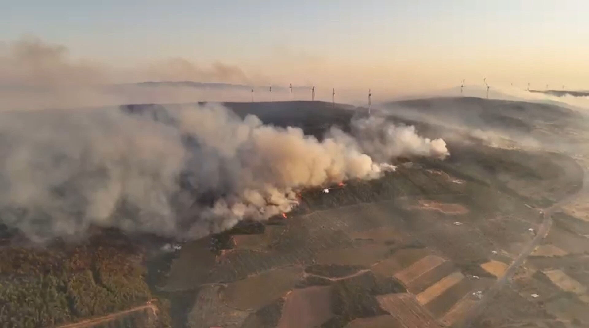 Şarköy ilçesinde devam eden orman yangını 26. saatine girerken, rüzgarın etkisiyle yeniden yükselen dumanlar dron ile havadan görüntülendi.