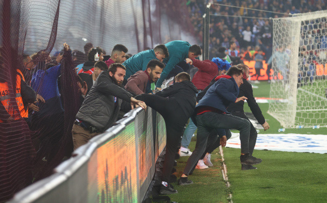 Ancak karşılaşma tamamlanmadan önce binlerce Trabzonspor taraftarının sahaya girmesi nedeniyle yönetimimiz, futbolcularımız, teknik ekibimiz ve delegasyonumuzun can güvenliği tehlikeye atıldı. Futbolcularımız arbedenin ortasında kaldı. Birçoğu çıkış tüneline giderken sayısız darbe ve yumruğa maruz kaldı. Yönetim olarak hemen müdahale ettik, gerekli girişimleri anında yaptık, oyuncularımızın güvenliğini sağladık.