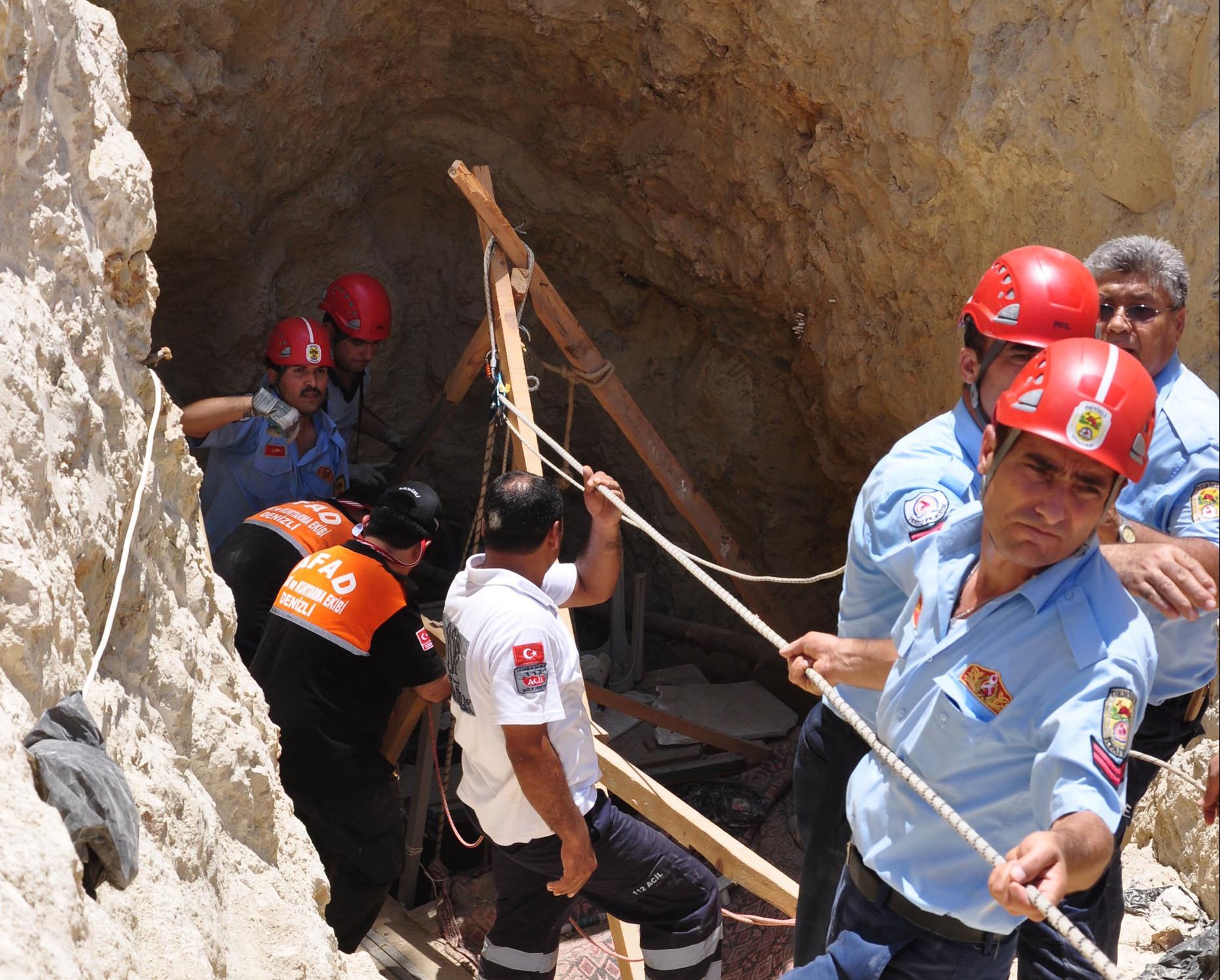 Olay, bugün sabah Denizli'nin Şirinköy bölgesindeki dağlık alanda meydana geldi. Bölgedeki ceviz ağaçlarını sulamak için açılan su kuyusunda çalışan İlhan Uzakgider (50) isimli işçi, yerin 10 metre altında havasız kalınca bayıldı.Kurulan düzeneğin yardımıyla kuyunun içine giren İl Afet Acil Durum Müdürlüğü çalışanı Mustafa Ateş, aşağıda uzun süre kalınca ve oksijen tüpü bitince fenalık geçirdi. Su kuyusunda çalışanlar olayı kurtarma ekiplerine bildirdi. Olay yerine gelen Denizli İtfaiyesi ve Denizli İl Afet Acil Durum Müdürlüğü ekipleri işçiyi kuyudan çıkarmak için çalışma başlattı. Kurulan düzenekle aşağı inen kurtarma ekipleri, İlhan Uzakgider'i halata bağladı.