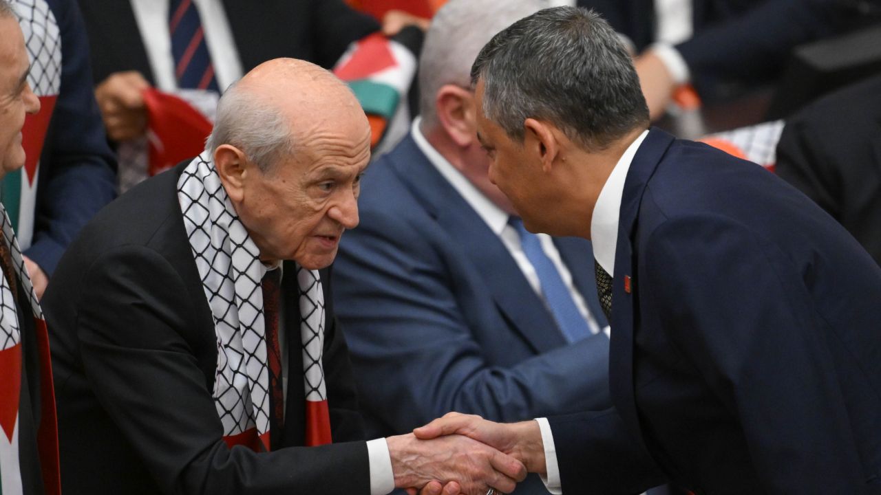 TBMM'de gerçekleşen Gazze oturumunda Dışişleri Bakanı Hakan Fidan sunum yaptı. MHP lideri Bahçeli ve CHP Genel Başkanı Özgür Özel'in tokalaştığı anlar dikkatlerden kaçmadı.