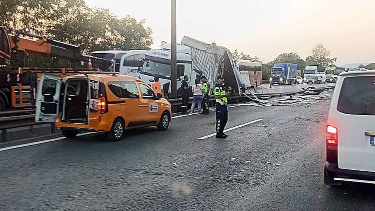 Anadolu Otoyolu Düzce kesiminde tır aracı bariyerlere çarparak dorsesinde bulunan turşular yola savruldu. Yol yaklaşık 1 saat trafiğe kapalı kaldı.