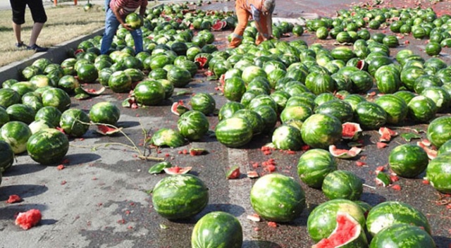 Çorum'da, refüje çarpan TIR'ın dorsesindeki karpuzların dökülmesi sonucu karayolu 2 saat ulaşıma kapandı. Bazı sürücüler, yola dökülen karpuzları topladı. Karpuz tarlasına dönen yol, temizlik çalışmasının ardından yeniden açıldı.