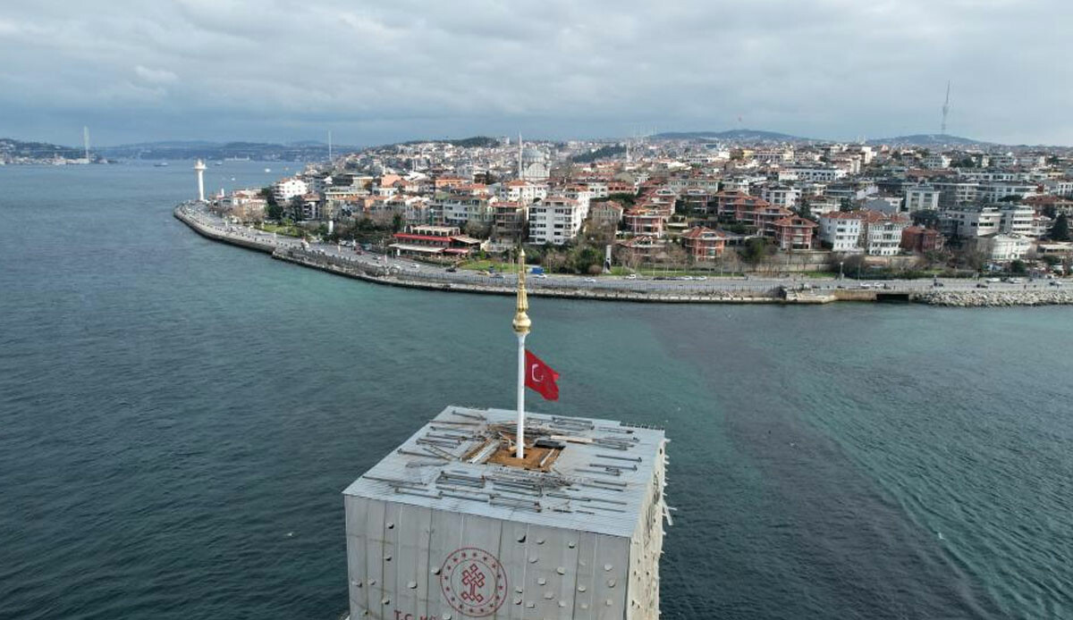 Kız Kulesi’nde Kültür ve Turizm Bakanlığı tarafından 2021 yılında başlatılan restorasyon çalışmaları hız kesmeden devam ediyor. Yapılan çalışmalarla Kız Kulesi’nin üst tarafında bulunan iskelenin sökülmesinin ardından kuleye ait Türk bayrağının asılı olduğu direk ve alem ortaya çıktı.