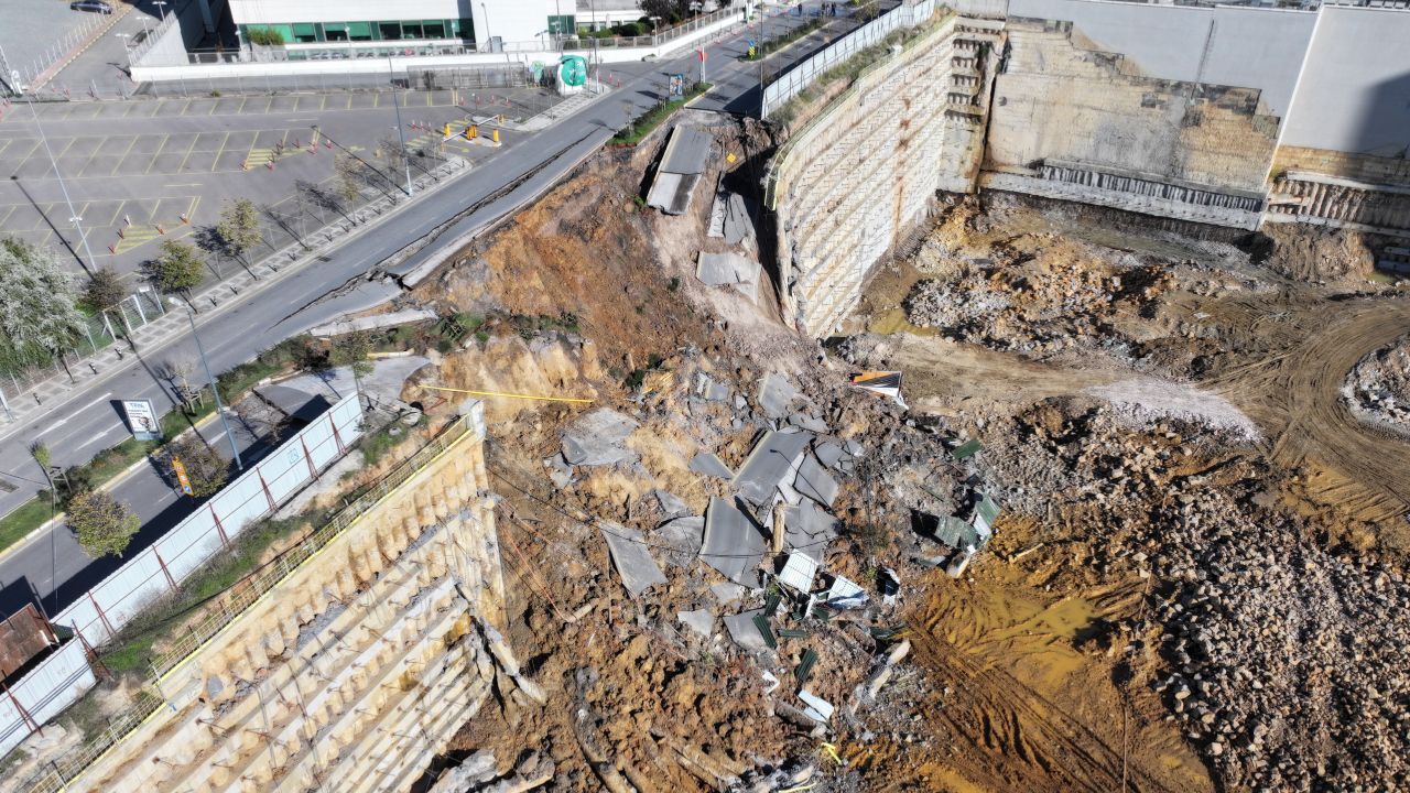 Ümraniye'de bulunan bir inşaatın istinat duvarı yıkıldı. Duvarın hemen yanındaki cadde bölümünde çökme meydana gelirken, cadde çift yönlü olarak trafiğe kapatıldı.