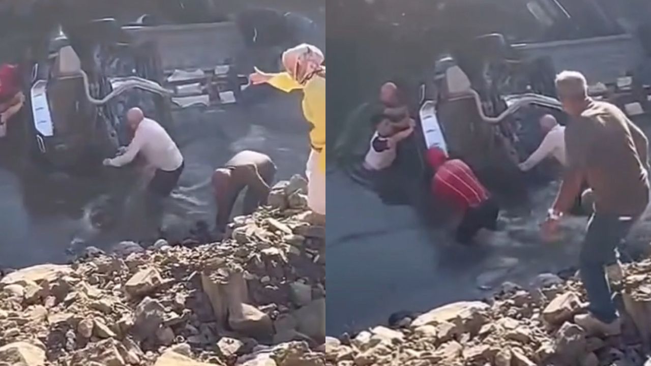 Sürücü B.E. ve annesi M.E, boğulma tehlikesi geçirdi.