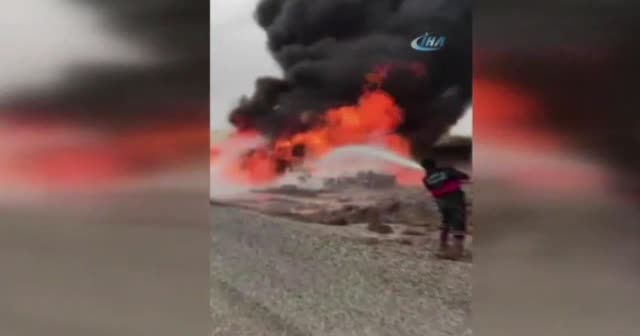 Konya’da akaryakıt taşıyan tanker ile kum yüklü kamyonun çarpışması sonucu alev alev yanan araçlardaki sürücüler hayatını kaybetti.
