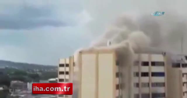 El Salvador’da Maliye Bakanlığı binasında çıkan yangında bir kişi, kendini boşluğa bıraktı.
