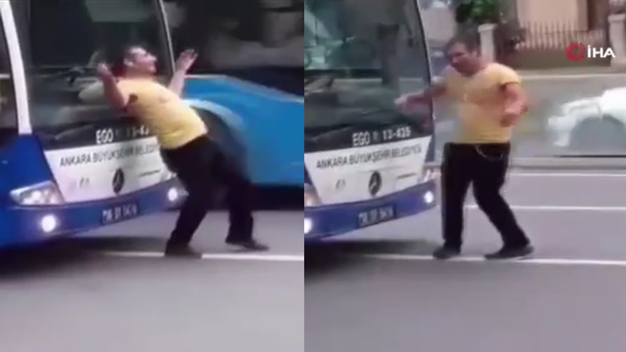 Ankara’da sorumsuz bir vatandaş trafiğin en yoğun olduğu saatte kimseye aldırış etmeden oyun havası oynadı. Kulağında kulaklıkla yol ortasında bir o yana bir bu yana göbek atan adam sürücülere zor anlar yaşattı.