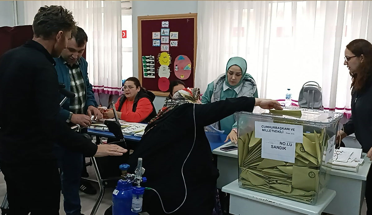 Artvin’de 61 yaşındaki KOAH hastası kadın tekerlekli sandalyesi ile beraberindeki oksijen tüpüyle oy kullanmaya geldi.