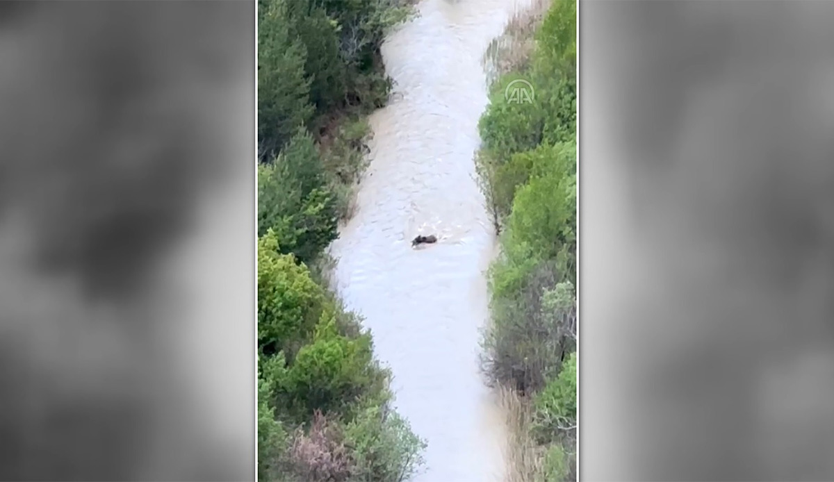 Sivas'ın İmranlı ilçesinde bir ayı, yavrusunu ağzına alarak ırmağın karşısına geçirdi. Bu anlar bir vatandaş, cep telefonu kamerasıyla görüntüledi. Videoyu seyredenler hem şaşırdı hem de duygulandı.