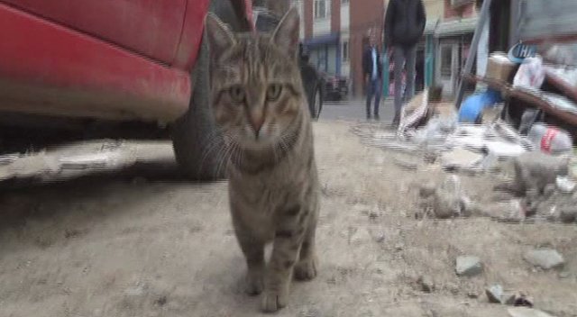 Tokat’ta trafik kazası sonucu ön bacaklarından biri kesilen 'Kahraman' isimli kedi, hayvansever esnafın yardımları ile engelleri aştı.