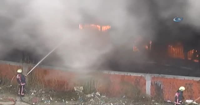 Bayrampaşa'daki fabrika yangını, iş merkezinin otopark olarak kullanılan üst katında bulunan alana da sıçradı. Otoparktaki araçlar alev alev yanmaya başladı.