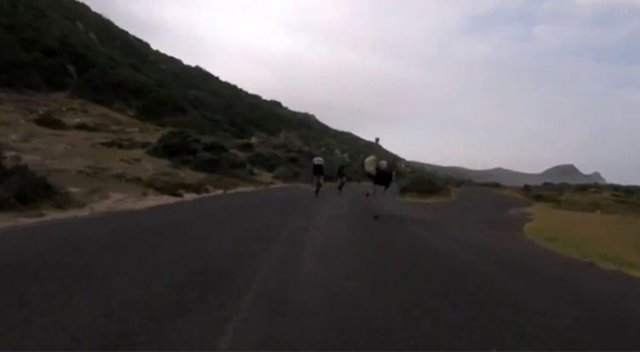 Bisiklet turuna deve kuşu da dahil oldu, ortaya komik görüntüler çıktı.