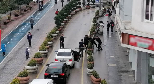 Bolu’da, 3 çocuğuyla birlikte yolun karşısına geçmek isteyen babanın, yol vermeyen otomobildeki 3 kişi tarafından çocuklarının gözü önünde darp edilmesi kameralara yansıdı.