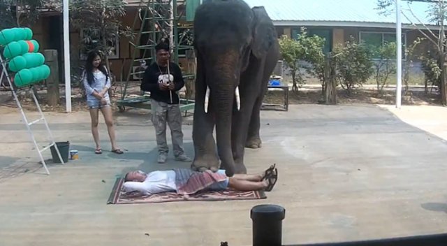 Görüntüler Tayland’daki bir doğa parkından. Taylandlılar masajda o kadar iyi ki bunu bir file bile öğretebiliyor. Fil, yere yatan adama önce hortumuyla, ardından ayağıyla güzel bir masaj yapıyor. Neyse ki bu tehlikeli gösteri, bir kaza yaşanmadan son eriyor.