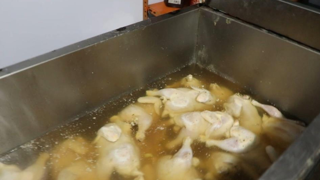 Çamaşır suyundaki bozuk tavuk etlerini müşteriye yedirdiler