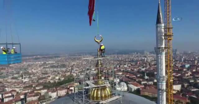 Çamlıca Camii aleminin üzerindeki hilal törenle yerine konuldu. Hilalin yerine yerleştirilmesi ile alem tamamlanırken, o anlar drone ile havadan görüntülendi.