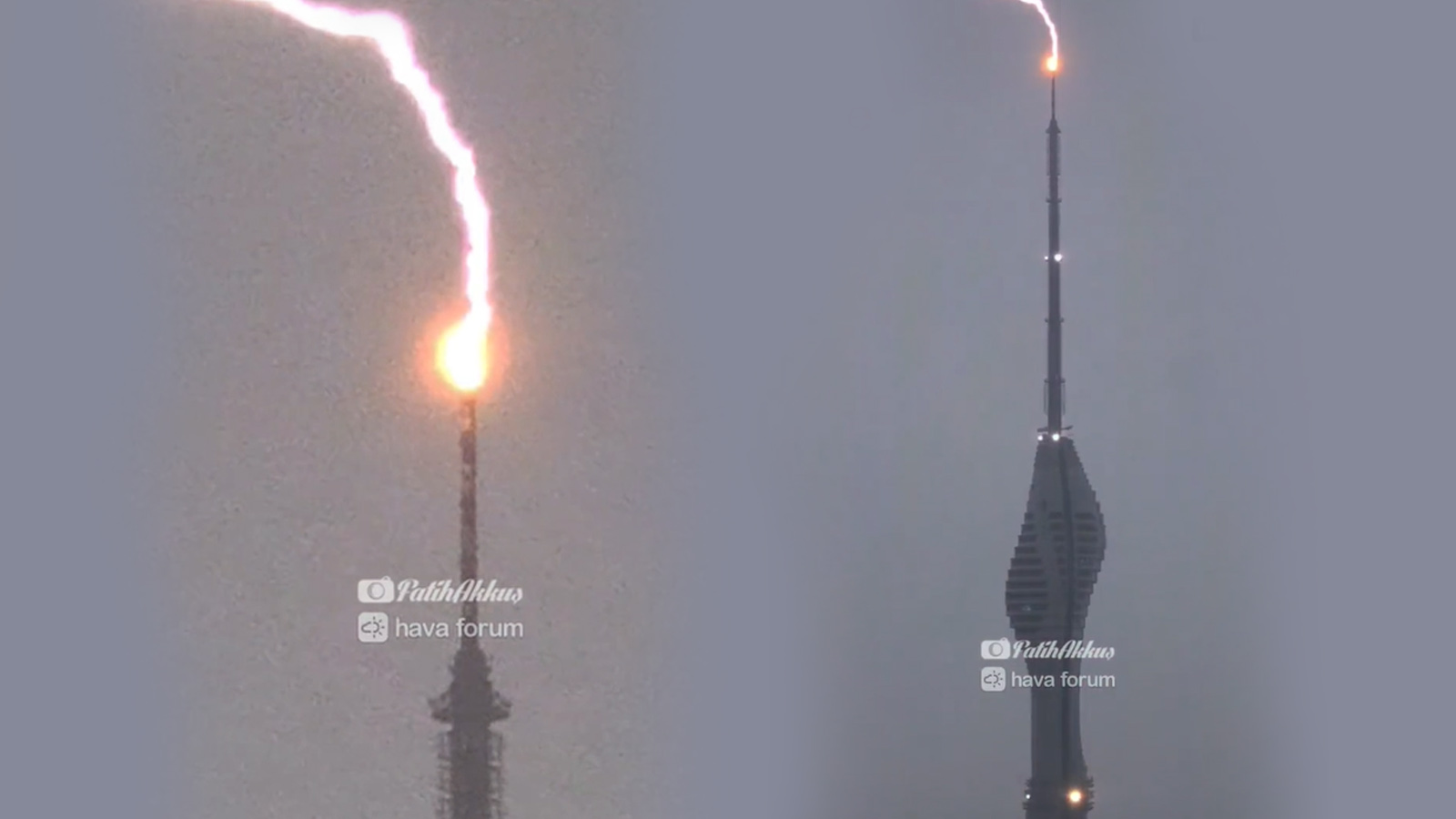 İstanbul'da Çamlıca Kulesi'nin üzerindeki paratonere yıldırım düştü. O anlar bir cep telefonu kamerası ile saniye saniye kaydedildi.