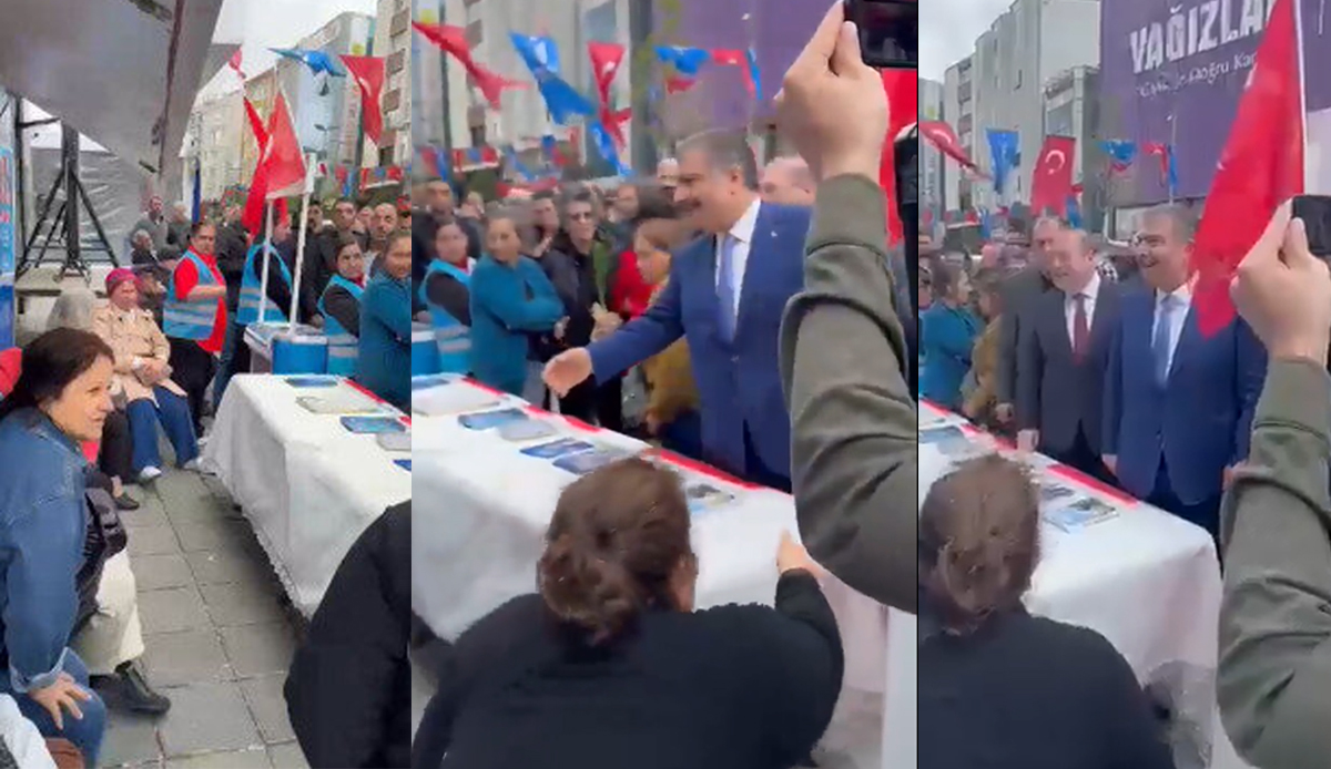 İstanbul Esenler'de vatandaşlarla bir araya gelen Sağlık Bakanı Fahrettin Koca, cadde üzerinde bulunan CHP seçim standını ziyaret etti. Burada CHP'lilere selam vermek isteyen Bakan Koca'nın uzattığı el havada kaldı. O anlar kameralara da yansıdı.