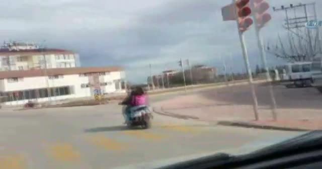 Antalya’da 3 çocuğun trafik ışıklarına aldırmadan elektrikli bisikletle yaptığı yolculuk tehlike oluşturdu.