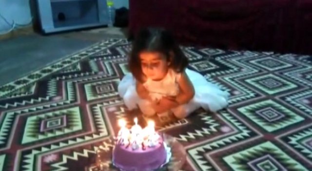 Adıyaman’da, kendisine doğum günü sürprizi yapılan 2 yaşındaki minik kız, mumları üflediği esnada saçları alev aldı.