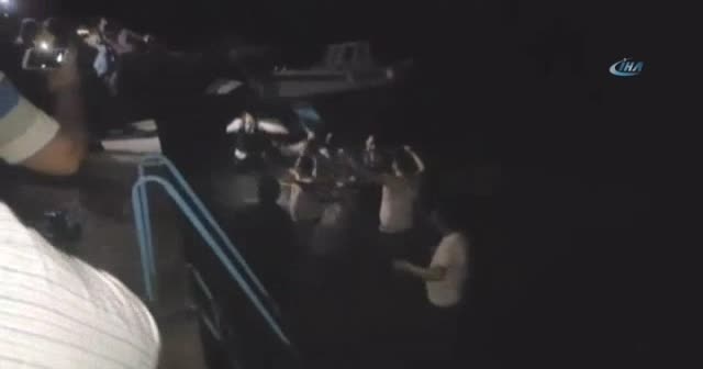 Muğla’nın Marmaris ilçesinde düğün bitiminde damat ve arkadaşları denize atladı, suda harmandalı oynadı. Gelin ise sahilde dakikalarca damadın denizden çıkmasını bekledi. Marmaris’e bağlı Söğüt Mahallesi’nde hafta sonu gerçekleşen düğünde damat ve arkadaşları farklı bir kutlamaya imza attı.