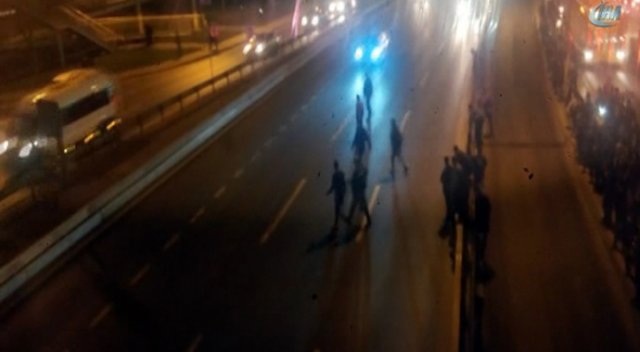 Zeytinburnu metrobüs durağında oluşan yoğunluk nedeniyle beklemek istemeyen vatandaşlar, üst geçit yerine hızla akan E-5 karayolunu kullanınca ortaya ilginç görüntüler çıktı.