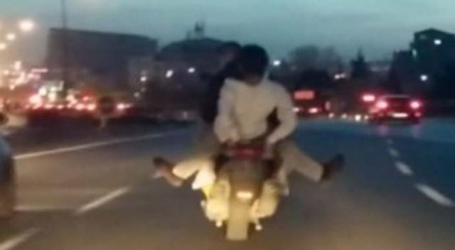 E-5 Karayolu Büyükçekmece istikametinde motosikletin üzerindeki 3 kişi, yaptıkları hareketlerle yürekleri ağza getirdi. O anlar ise cep telefonu kamerası tarafından görüntülendi. E-5 Karayolu Büyükçekmece istikametinde dün akşam bir motosikletin üzerindeki 3 kişinin seyir halindeyken yaptıkları tehlikeli hareketler yürekleri ağza getirdi.