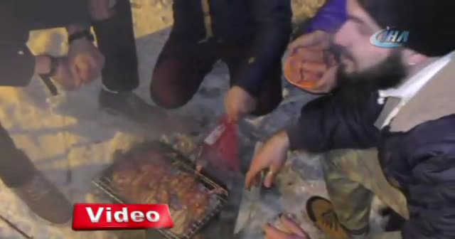 Ardahan’da etkili olan yoğun kar yağışı ve soğuk hava hayatı olumsuz etkilerken, kimi vatandaşlar da mangal yaparak karın tadını çıkardı.