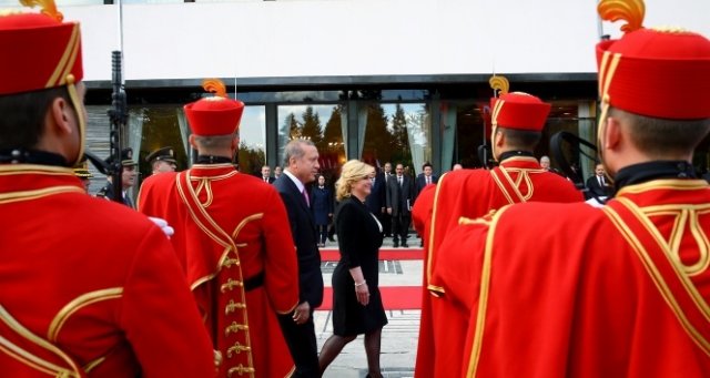 Cumhurbaşkanı Erdoğan, temaslarda bulunmak üzere geldiği Zagreb’de Hırvatistan Cumhurbaşkanı Kolinde Grabar-Kitaroviç tarafından resmi törenle karşılandı. Erdoğan, törende askerleri Hırvatça “Merhaba Asker” anlamına gelen "Pozdrav Vojnici"yi demeye hazırlanırken son anda cebindeki notu çıkarıp bakarak, selamlamayı yaptı.