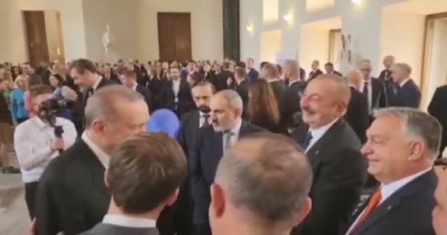 Cumhurbaşkanı Recep Tayyip Erdoğan, Avrupa Siyasi Topluluğu (AST) toplantısı öncesi liderlerle bir araya geldi. Liderlerin sohbet ettiği anlar kameraya yansırken Cumhurbaşkanı Erdoğan burada Macron'a dönerek "Seni de bu tarafa alalım. Asya Avrupa'dan büyük' dediği görüntüler sosyal medyada günün en çok izlenen videosu oldu.