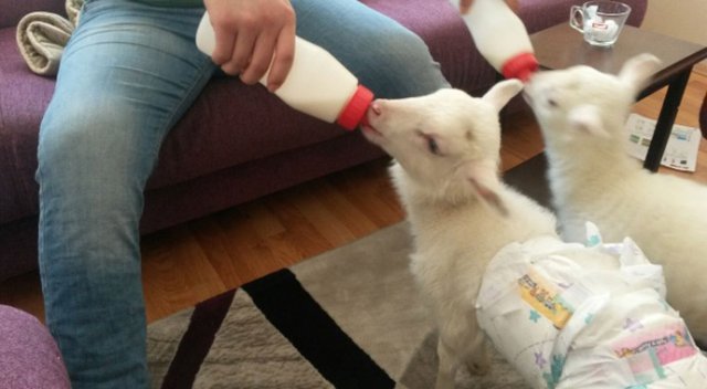 Evde beslediği kuzularının altına bebek bezi bağladı