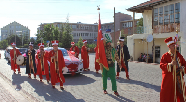 Kırşehir’de bir damat, gelin almaya mehter takımı ile birlikte gitti.