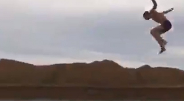 Brezilya’da bir kişi çıktığı tepeden göle atlamak istedi. İstediği atlayışı gerçekleştiremeyen genç adam, önce toprağa çakıldı ardından suya düştü. Şahsın durumu hakkında bir bilgi edinilemezken, o anlar ise cep telefonu kamerasına yansıdı.