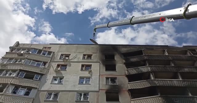 Harkov'da 9 katlı binanın çatısındaki bomba vinçle çıkarıldı