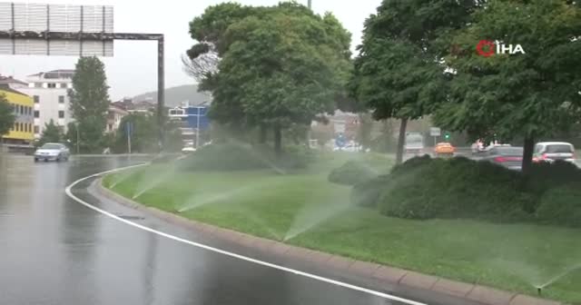 İstanbul Anadolu Yakası’nda sabah saatlerinden itibaren yoğun yağış etkisini gösterirken, İstanbul Büyükşehir Belediyesi Parklar ve Bahçeler Müdürlüğü bünyesindeki çimlerin fıskiyeyle sulanması dikkat çekti.